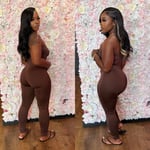 The rich brown tone brings depth and versatility, perfect for day-to-night looks that flow with your vibe. Rock it with fresh kicks and gold hoops for daytime flex, or elevate with heels and statement accessories when it’s time to turn up. Whether you’re out in the city or owning the scene, this jumpsuit keeps it real and ready for anything.