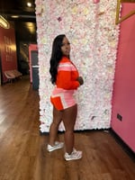 Turn up the heat in our Red, Pink & White 3-Piece Short Set, featuring a fitted bra, cropped jacket, and matching shorts. This color combo brings all the energy — soft meets bold with just the right amount of attitude.